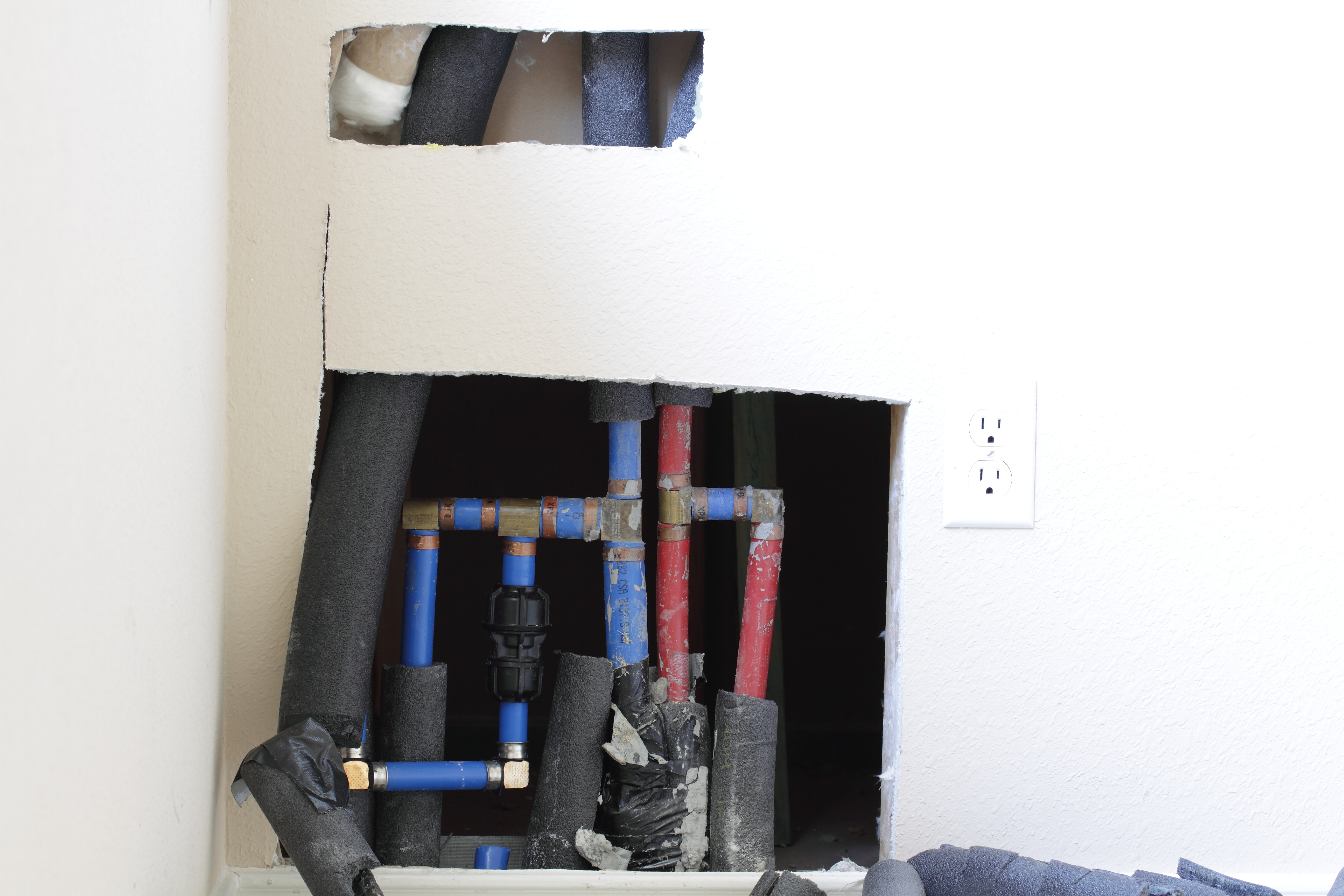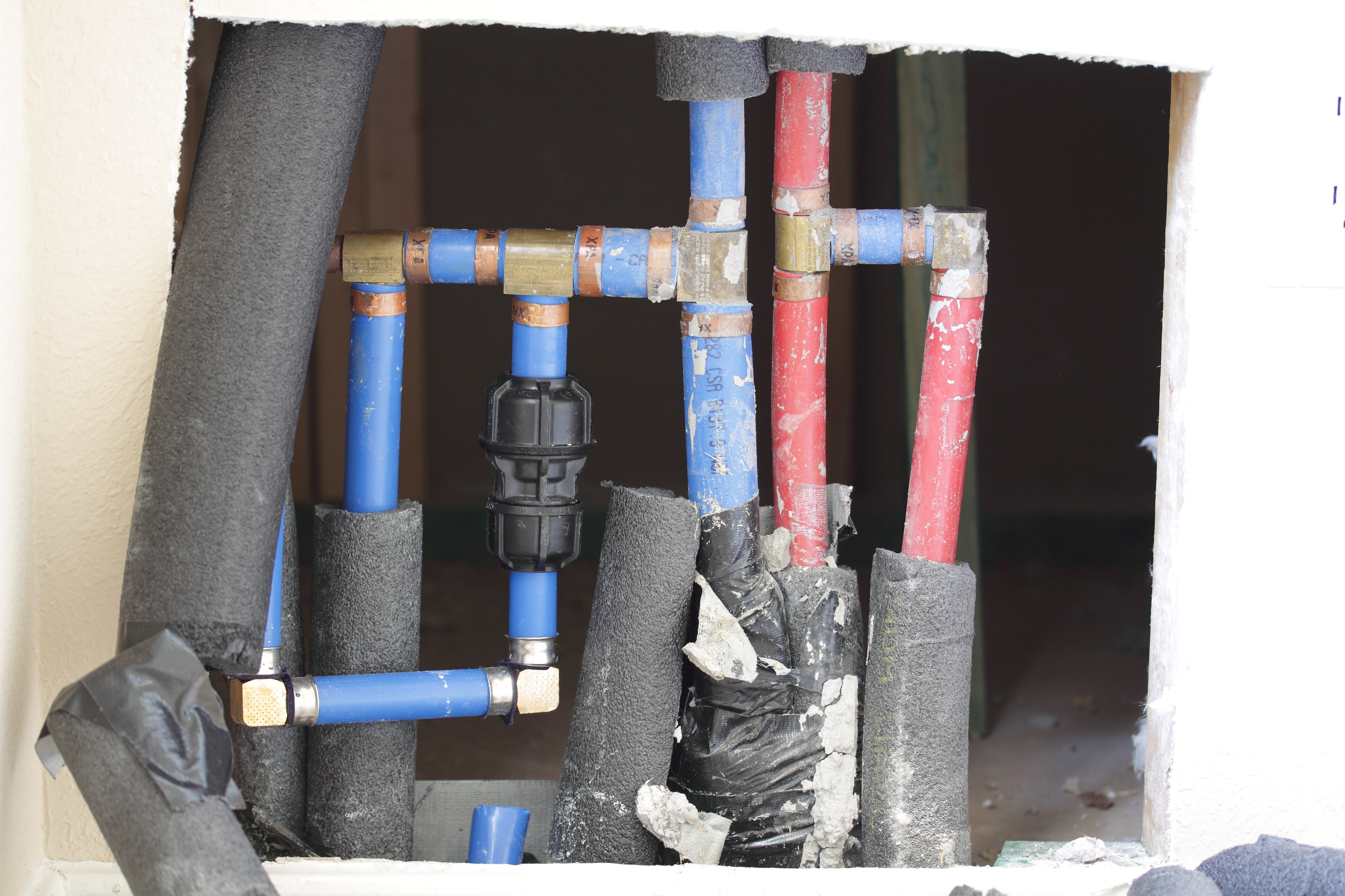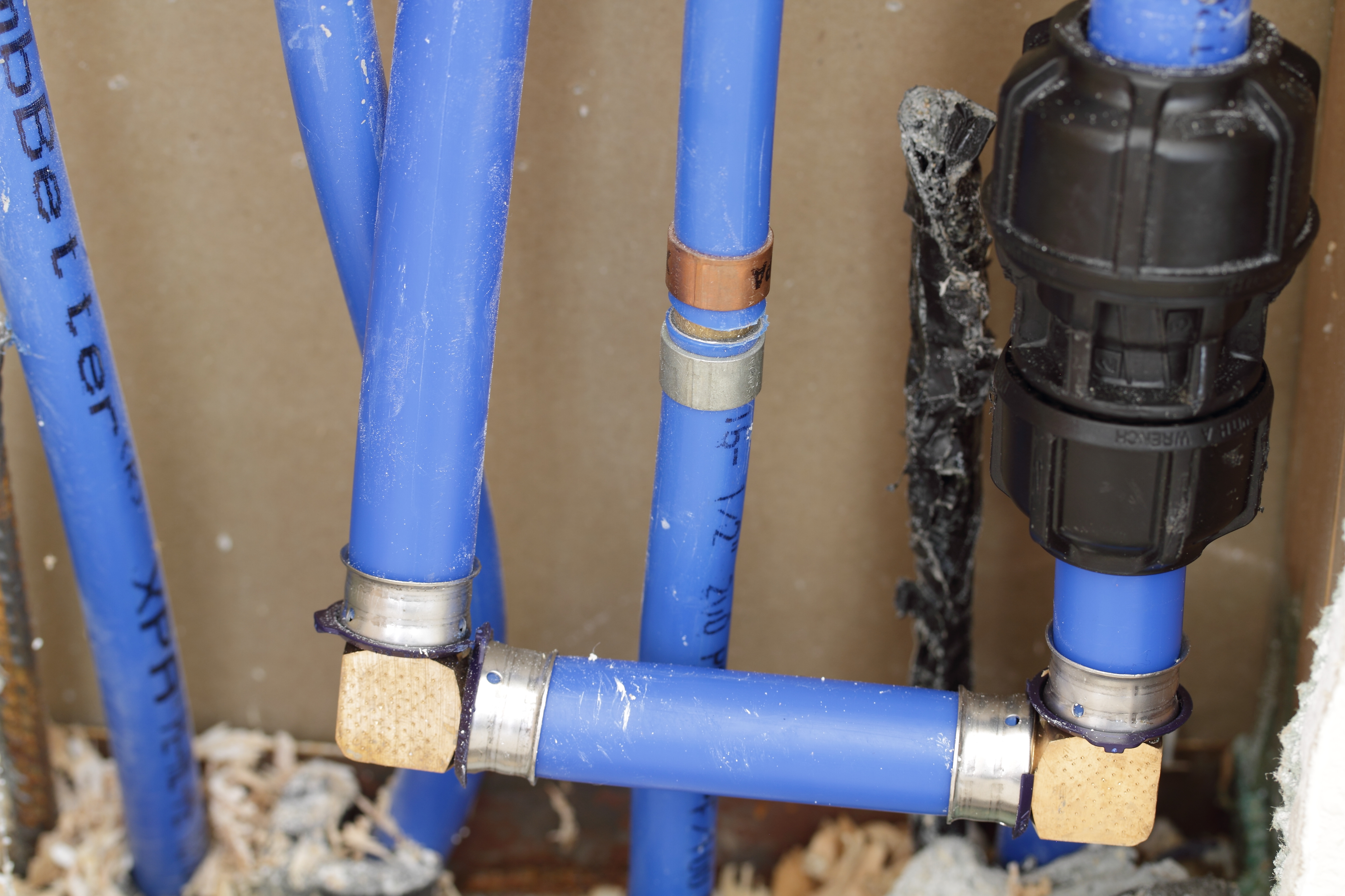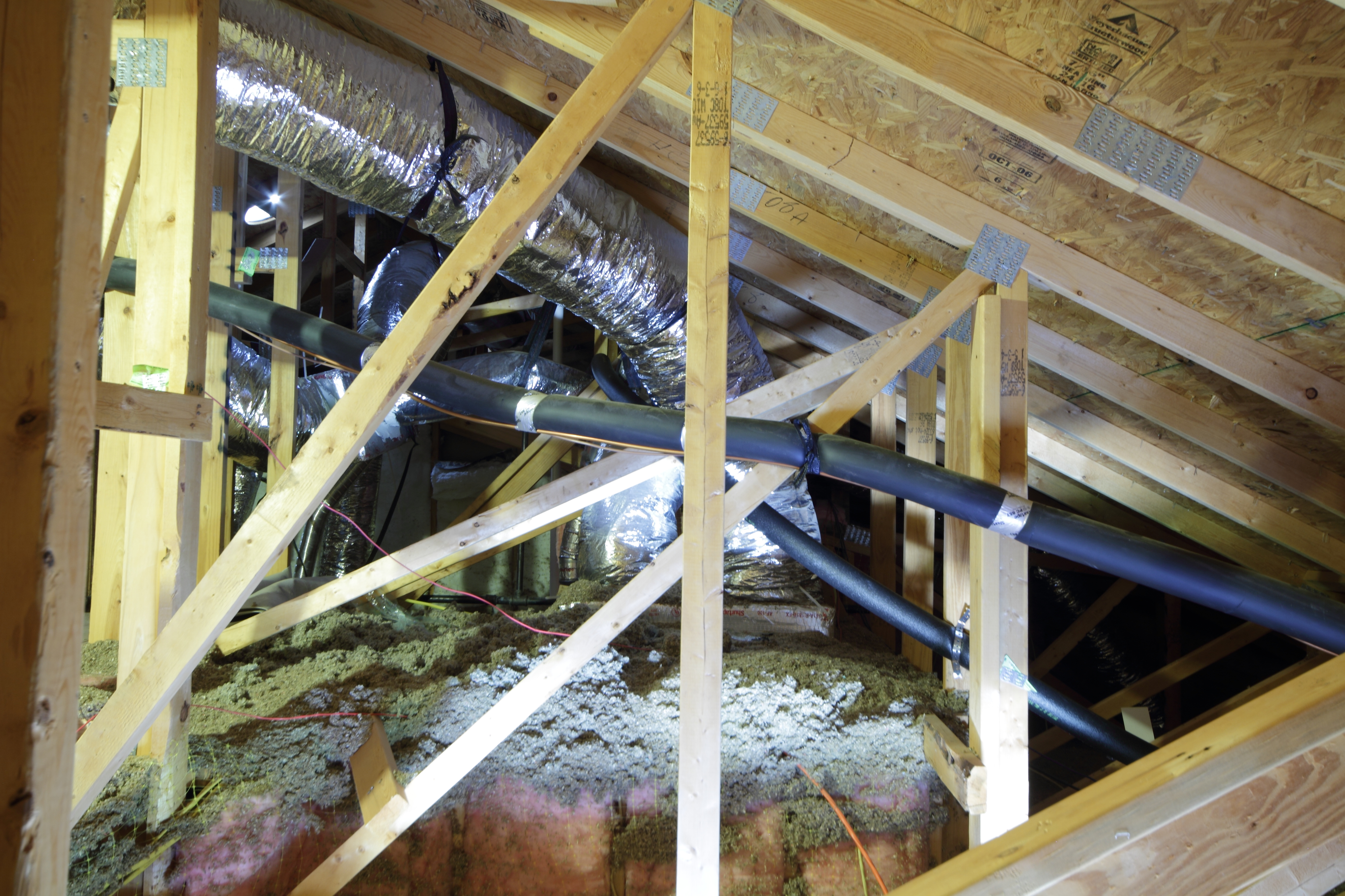 The new Viega piping runs through the attic.